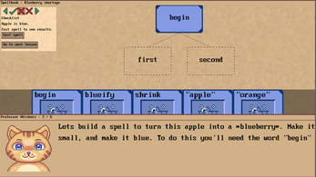 Along with your instructor Professor Whiskers, build spells to solve open ended puzzles and help people around the academy.